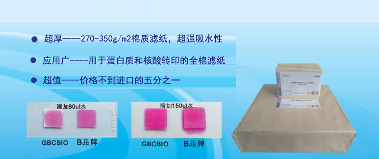 - 可与PVDF膜或NC膜配合使用,用于蛋白质和核酸转印的全棉滤纸